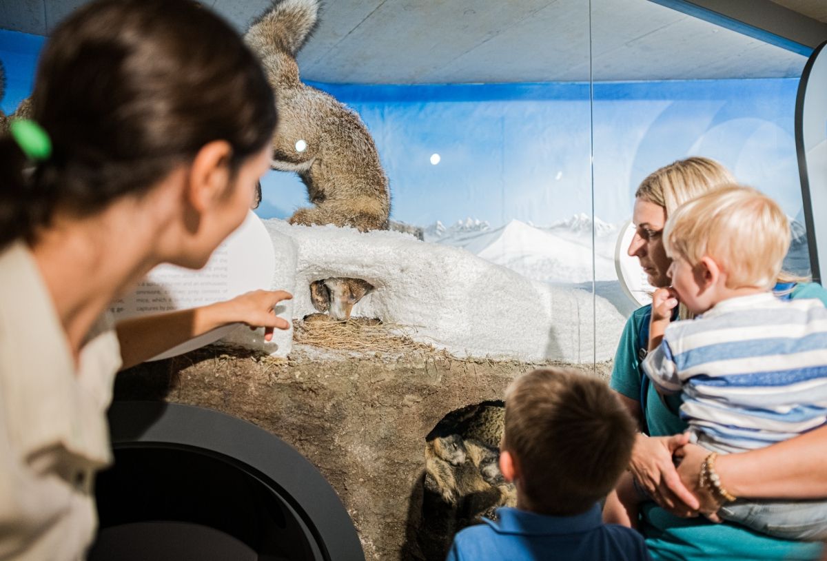 Durch sieben Räume und drei Ebenen führt unsere Erlebnisausstellung auf den Spuren des Steinwilds. Beim Spaziergang in der riesigen „Steilwand“ lernen Sie den Lebensraum Hochgebirge mit all seinen Facetten kennen. Die saisonalen und tageszeitlichen Wanderungen des mächtigen Steinbocks sind dabei ebenso authentisch nachvollziehbar wie der Überlebenskampf in Hochgebirgshabitaten, die uns Menschen in der Regel verborgen bleiben. Neben zahlreichen Modellen und interaktiven Spielen bietet die Ausstellung auch filmische Höhenflüge: Denn modernste Technik lädt dazu ein, berühmte Gebirgsformationen aus der Adlerperspektive kennenzulernen und Groß-, Klein- und Kleinstlebensräume hautnah zu erleben..